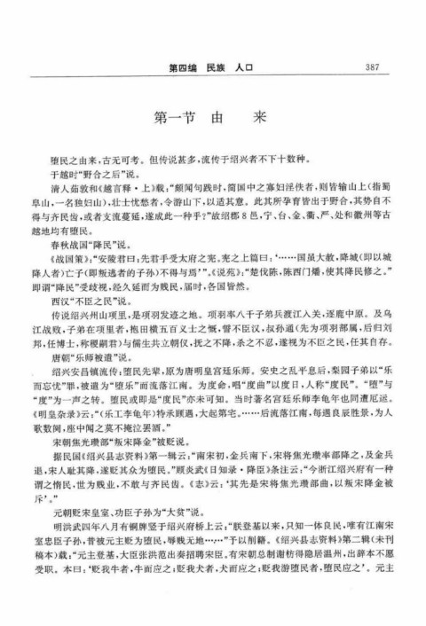 退,宋人耻其降,遂贬其众为堕民。”顾炎武《日知录·降臣》条注云:“今浙江绍兴府有一种