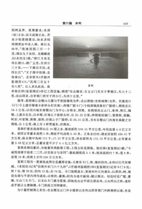鉴湖系湖泊蓄洪、洼地蓄洪类陂塘工程,工程主体是围堤。徐次铎《复鉴湖议》载:“今