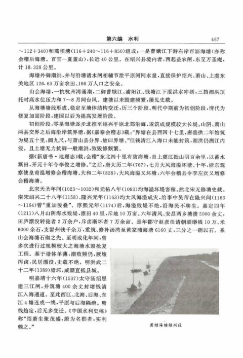 据《新唐书·地理志》载:会稽“东北四十里有防海塘,自上虞江抵山阴百余里,以蓄水
