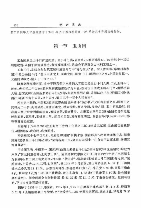 第 一 节 玉 山 闸
