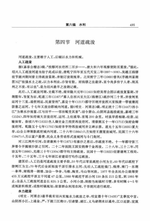 《明史·河渠志》最早载有绍兴实施水力疏浚之举:明宣德十年(1435) “主事沈中言,