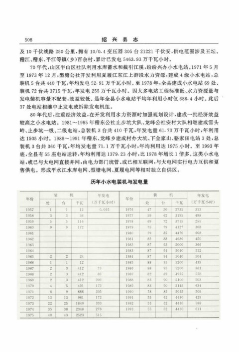 达1505小时。1988~991年稽东、龙峰乡建成村办大坑、下金家山、骆家田电站3处,总