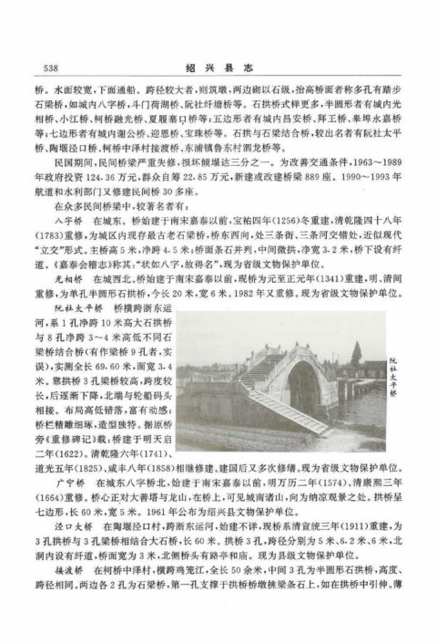 相桥、小江桥、柯桥融光桥、夏履寨口桥等;五边形者有城内昌安桥、拜王桥、皋埠永嘉桥