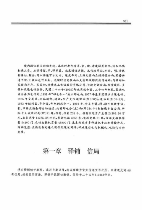 镇和长途电话业务。民国二十四年(1935)邮政实现专营。三十四年电报、长途电