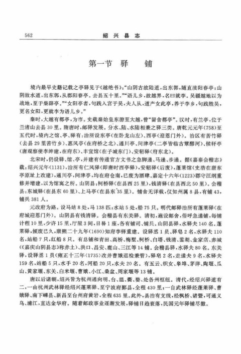 境内最早史籍记载之亭驿见于《越绝书》:“山阴古故陆道,出东郭,随直渎阳春亭;山