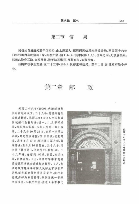 民信始自清道光五年(1825),由上海正大、福润两民信局来绍设分局,至民国十六年