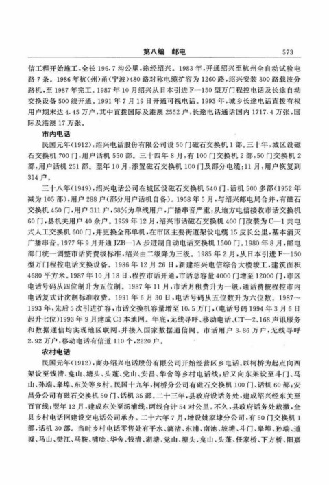 部,话机30部。当时乡村电话零售处有平水、漓渚、东浦、南池、坡塘、斗门、皋埠、孙端、道