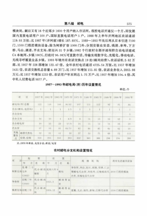 1957~ 1993年邮电局(所)历年设置情况