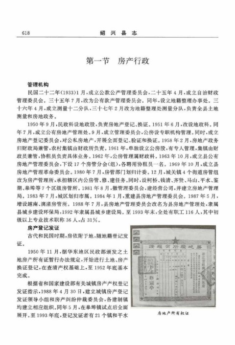 1950年9月,民政科设地政股,负责房地产登记、换证。1951年6月,改设地政科。同