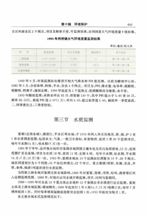 1 9 9 3 年 柯 桥 镇 大 气 环 境 质 量 监 测 结 果