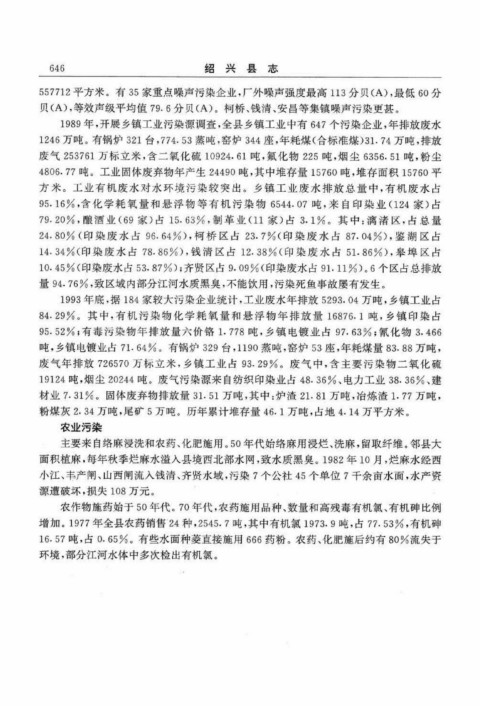 1993年底,据184家较大污染企业统计,工业废水年排放5293.04万吨,乡镇工业占