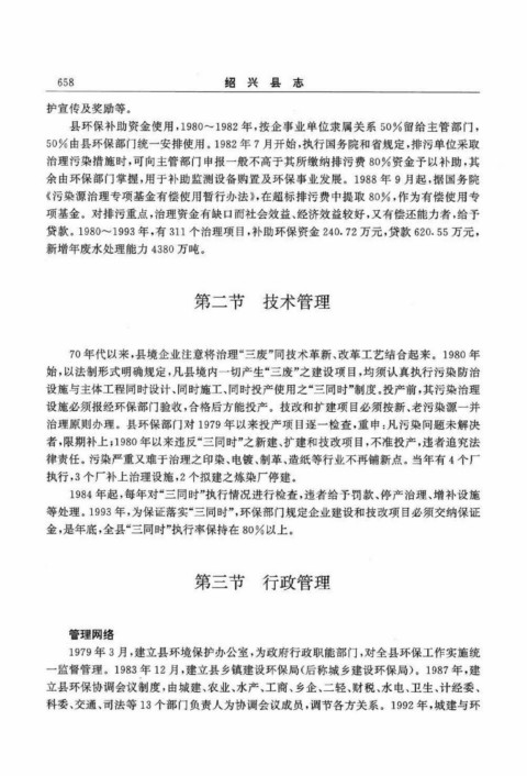 70年代以来,县境企业注意将治理“三废”同技术革新、改革工艺结合起来。1980年