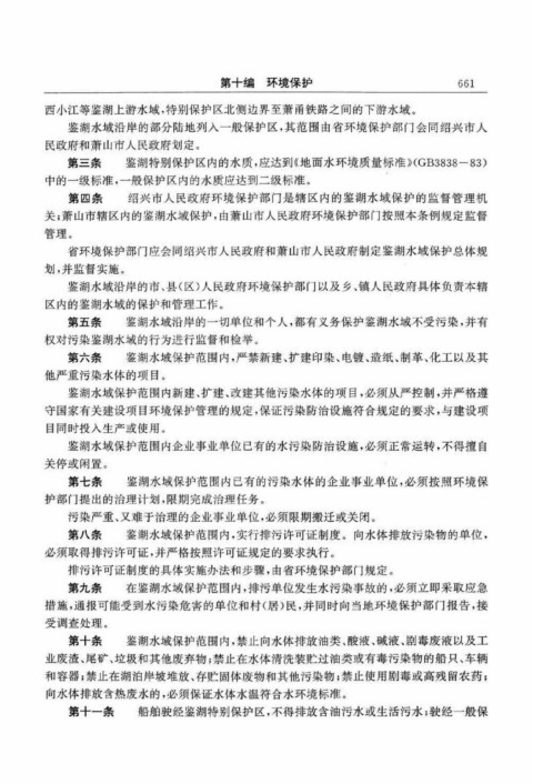 第三条 鉴湖特别保护区内的水质,应达到《地面水环境质量标准》( GB3838-83)