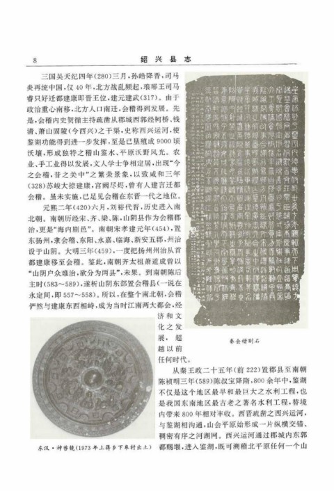 东汉·神兽镜(1973年上蒋乡下皋村出土) 都赐堰,进入鉴湖,既可溯稽北平原任何一个山
