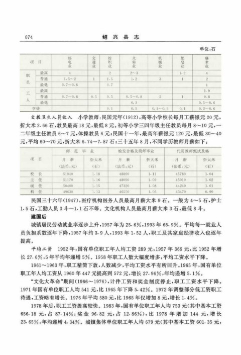1. 5石,工勤人员3斗~1. 1石不等。文化机构人员最高月薪大米3石,最低8斗。