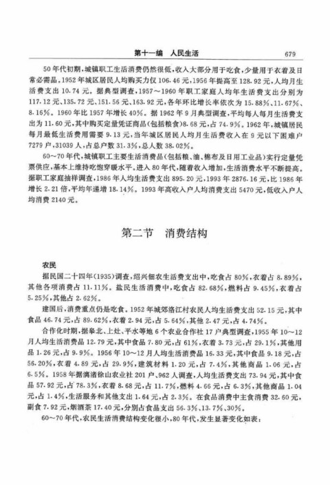 票供应,基本上维持吃饱穿暖水平。进入80年代,随着收入增加,生活消费水平不断提高。