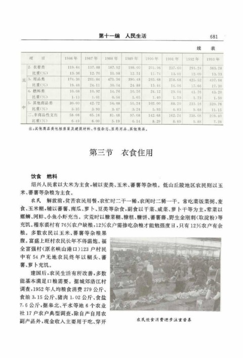 充饥。稽东裘村有7 6%农户缺粮,1 2%农户需掺吃杂粮才能勉强度日,只有1 2%农户有余