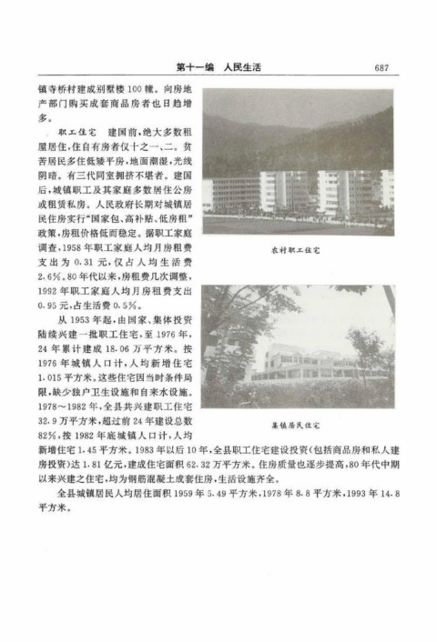 全县城镇居民人均居住面积1959年5. 49平方米,1978年8. 8平方米,1993年14. 8
