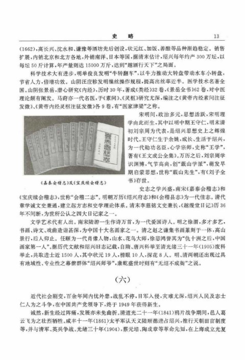 《宝庆续会稽志》,世称“会稽二志”。明朝万历《绍兴府志》和《会稽县志》为一代佳志。清代