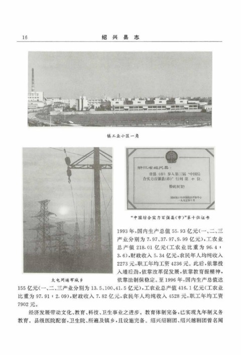 “中国综合实力百强县(市)”第十位证书