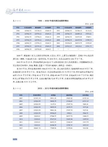 表 1-1-1 1990 ~ 2002 年绍兴县区域面积情况