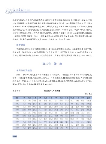 表 2-4-1 绍兴站年、月降水量