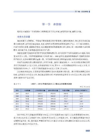 2013 年底,绍兴县地表水资源量 9.94 亿立方米(径流深 844.1 毫米)占总水资源量的 80.34%,