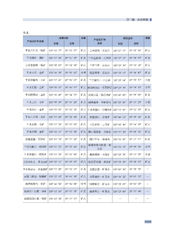 平水石旗·金矿 120°38′51″ 29°56′57″ 矿点 福全福全山·石英砂岩 120°29′36″ 29°59′32″ 中型