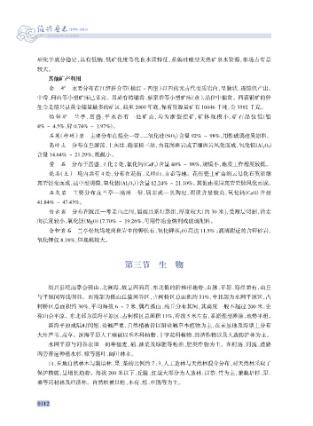 高岭土 分布在皇游荡、上灰灶、谢家桥三处,由花岗斑岩或霏细斑岩风化而成,氧化铝(Al 2 O 3 )