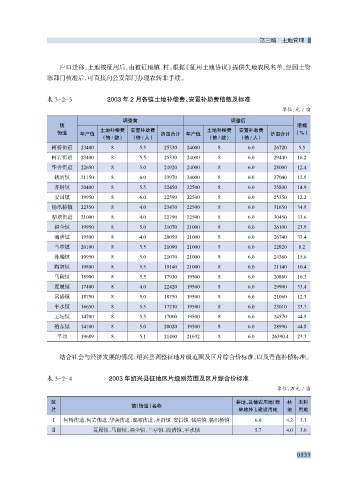 表 3-2-3 2003 年 2 月各镇土地补偿费、安置补助费倍数及标准