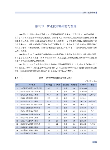 表 3-4-1 2000 ~ 2002 年绍兴县采矿权出让情况