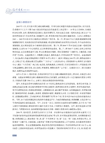 划编制,启动约 40 个中心村建设,试点村建设初显成效。第三年,即 2005 年全面启动面上村庄的