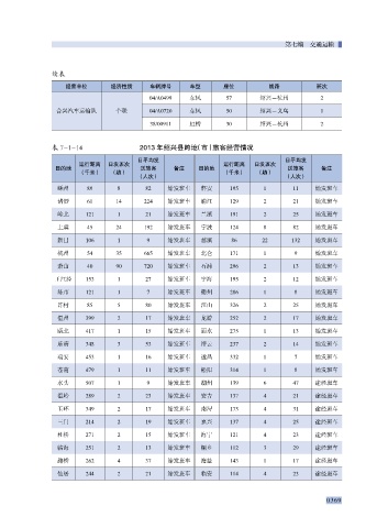 表 7-1-14 2013 年绍兴县跨地(市)旅客经营情况