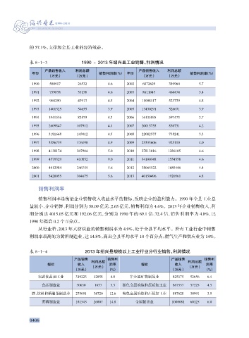 表 8-1-3 1990 ~ 2013 年绍兴县工业销售、利润情况