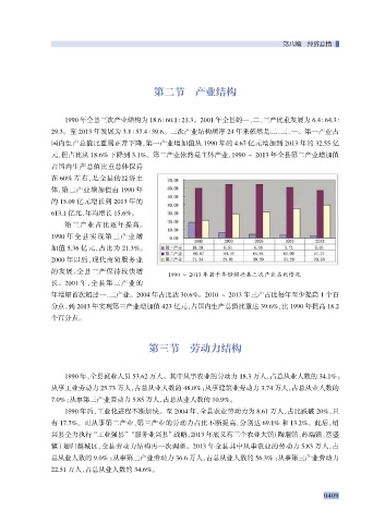 元,但占比从 18.6% 下降到 3.1%。第二产业依然是主体产业,990 ~ 2013 年全县第二产业增加值