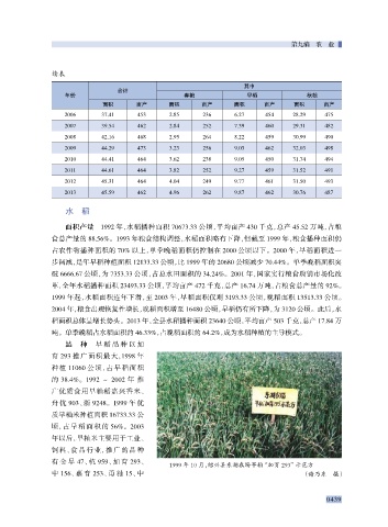 食总产量的 88.56%。1993 年粮食结构调整,水稻面积略有下降,但截至 1999 年,粮食播种面积仍