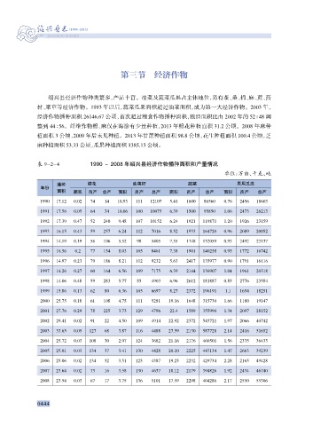表 9-2-4 1990 ~ 2008 年绍兴县经济作物播种面积和产量情况