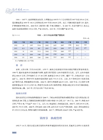 表 9-4-6 1992 ~ 2013 年全县河蟹产量情况