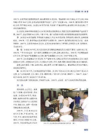 柿 20 世纪 90 年代,全县柿园面积逐年萎缩。从 1991 年的 62.2 公顷,减少至 1999 年的 41.13