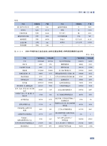 行业 计量单位 产量 行业 计量单位 产 量