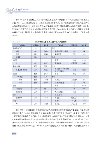 表 11-2-5 2008 年绍兴县主要工业产品及产量情况
