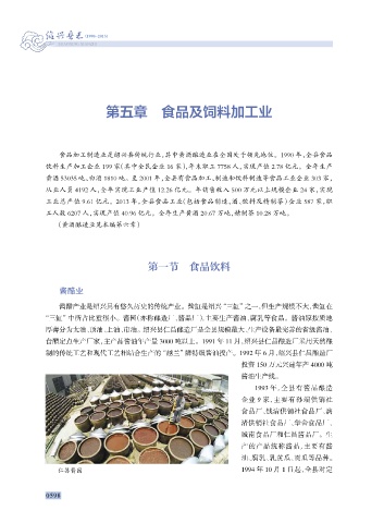黄酒 53035 吨、白酒 1810 吨。至 2001 年,全县有食品加工、制造和饮料制造等食品工业企业 303 家,