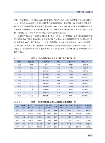 表 12-2-2 1992 ~ 2013 年绍兴县纺织企业主要产品产量产值一览
