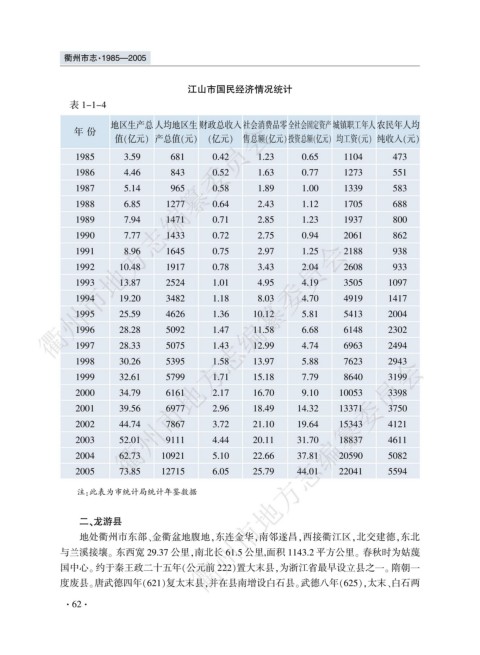 江山市国民经济情况统计