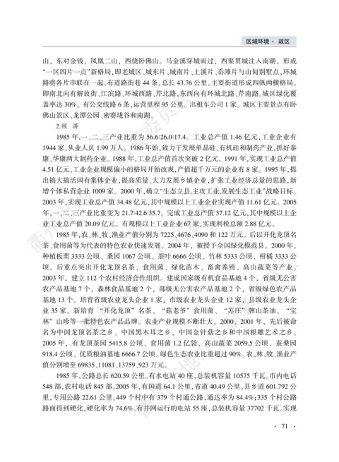 2005 年袁 有龙顶茶园 5415.8 公顷尧 食用菌 1.2 亿袋尧 高山蔬菜 2059.5 公顷尧 蚕桑园