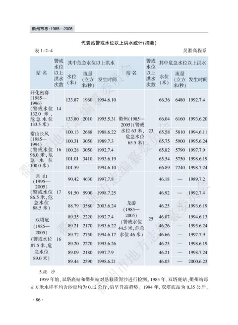 危 急 水 位 133.80 2010 1995.5.31 衢州渊1985要 66.04 6160 1993.6.20