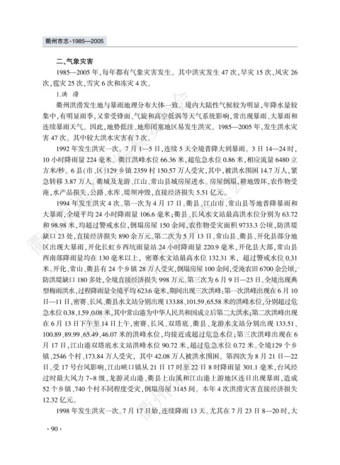 1992 年发生洪灾一次遥 7 月 1要5 日袁连续 5 天全境普降大到暴雨遥 3 日 14要24 时袁