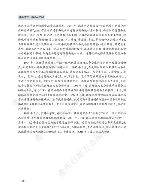 1998 年 2 月袁中国科学院尧省政府和常山县政府联合在野金钉子冶剖面上设立保护标