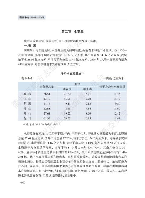 衢州属山地丘陵地区袁水资源主要为河川径流袁由地表水和地下水组成遥 据 1956要