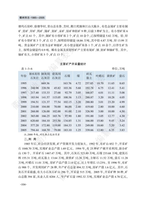 灰石开采最盛袁有大小石灰石矿山 296 个袁开采量 515 万吨遥 2005 年袁开采矿种 30 种袁矿